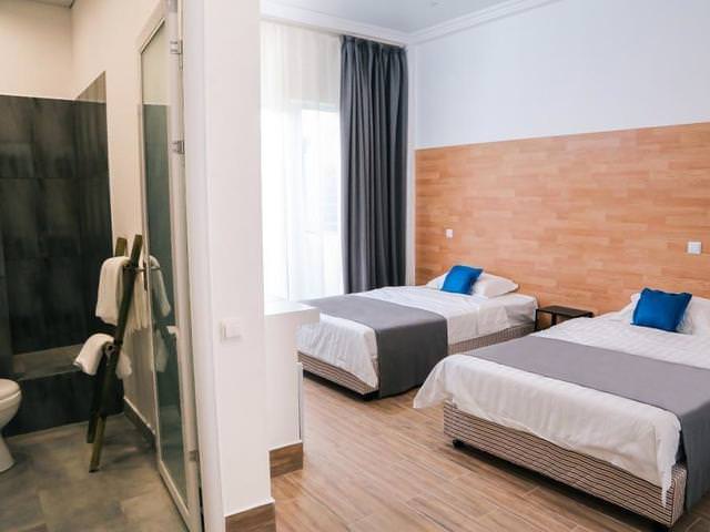 4-местный 3-комнатный апартамент с 2 спальнями (макс. 4+2 чел., телевизор, кондиционер, душ, тапочки, холодильник, туалетные принадлежности, балкон, 1-спальные/ 2-спальная кровать, набор посуды, туалет, чайный набор, кухня). Доп. место - раскладной диван.